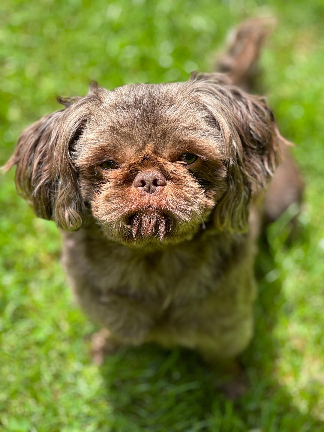 Toby is a solid chocolate liver boy. Toby is a playful, happy guy. He weighs 12 1/2 lbs.